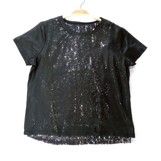 This is a ladies' blouse that comes in allover black for modern elegance. It is designed with a classic round neckline, short sleeves and a loose-fit body. The allover lace patterns add a touch of stylishness to the whole piece.