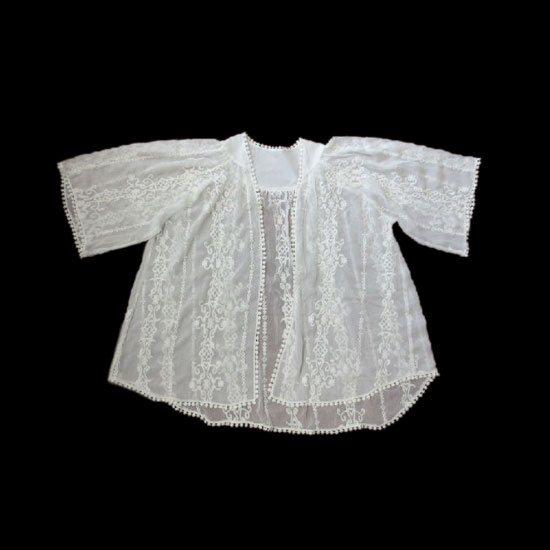 This is a ladies' blouse with an elegant and chic design. It comes in white with exquisite embroidery. This blouse goes well with assorted trousers, dresses and skirts.