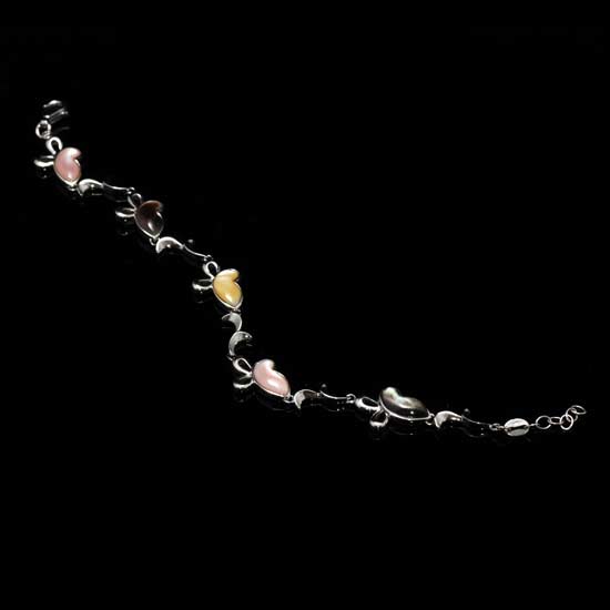 The design of this bracelet exudes a young and sweet style with the nice colored stones. The colorful stones make a great match for the silvery setting. This beautiful bracelet can brighten up your style with a range of outfits.