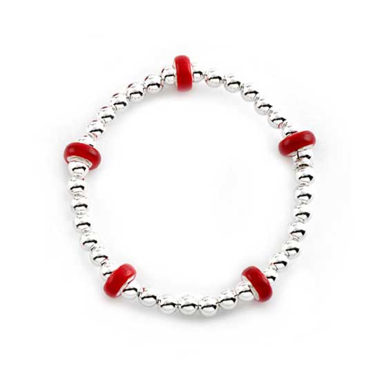 This stylish bracelet is chained up by polished beads in a mirror finish. Red hoops sit at intervals to give a passionate accent. Coming with an elastic style, this bracelet gives a custom fit to most wrists.