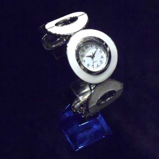 The ladies' bracelet watch showcases a bracelet-styled strap with circular-link patterns. The white finishing offers a sophisticated touch. The dainty watch is great for complementing your evening dresses.