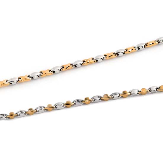 These stunning ladies' bracelets feature silvery and golden oval-shaped links. The bracelets shine with alluring radiance with the polished surfaces. Grace your wrist today with one of these bracelets.