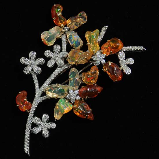 Featured here is a gorgeous brooch for ladies. It is crafted in the shape of a flower branch with attention to details. The perfect blend of dazzling diamonds and colored stones showcases eternal glamour.