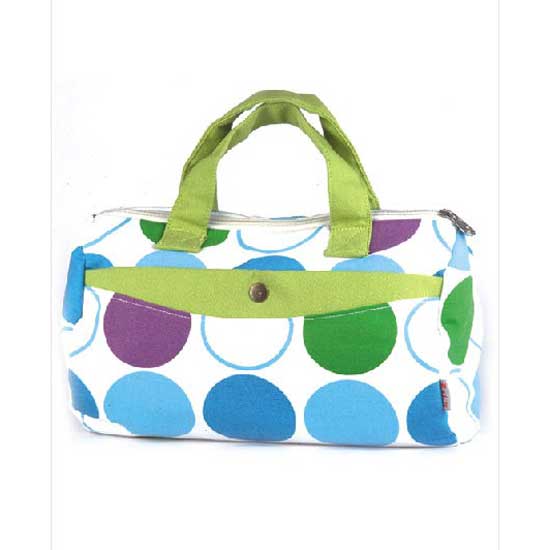 The ladies' canvas handbag flaunts dot patterns in vibrant colors. It comes with a snap-closure pocket for storing accessories. Add this classy one to your handbag collection.