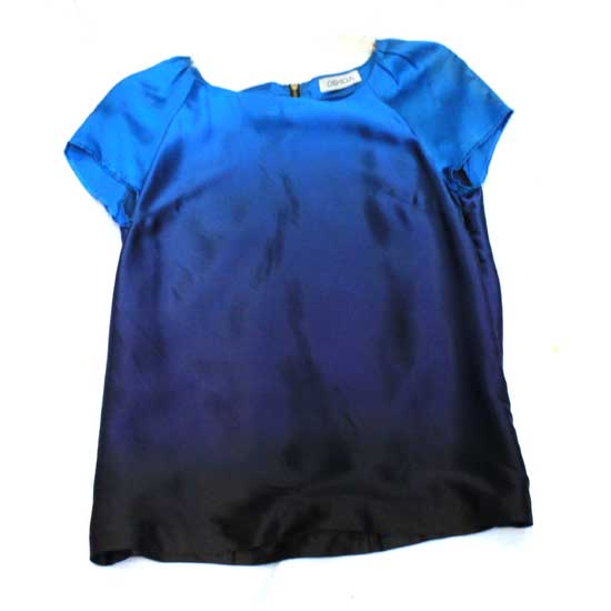 The ladies' blouse features a gradated blue-color construction. It comes with a full back zip up with a crew neckline and cap sleeves. This blouse is both chic and office-appropriate.
