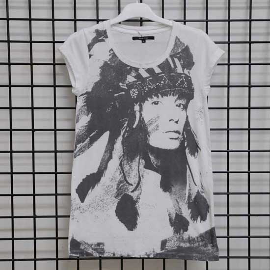 The ladies' T-shirt features a round neckline and a pair of cap sleeves. The girl print on the front adds an exotic touch. This T-shirt has a soft and breathable texture that is comfortable for wearing.