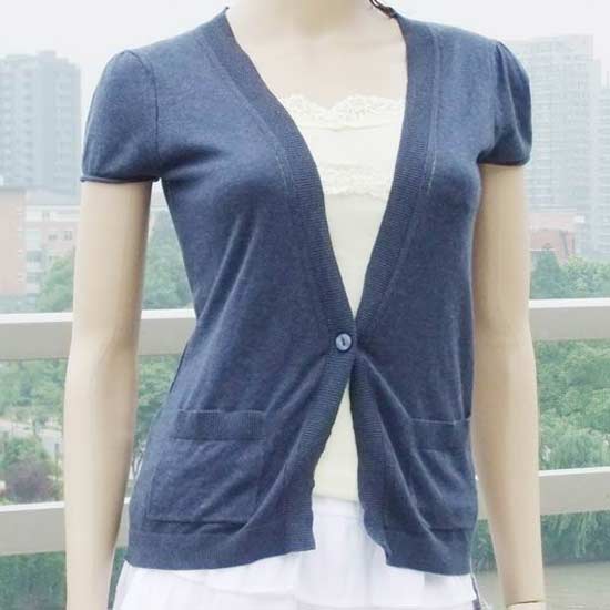 The design of this cardigan is simple yet decent. The cardigan comes with short sleeves with a one-button closure. The plain blue color makes it great to go with tops of different styles.