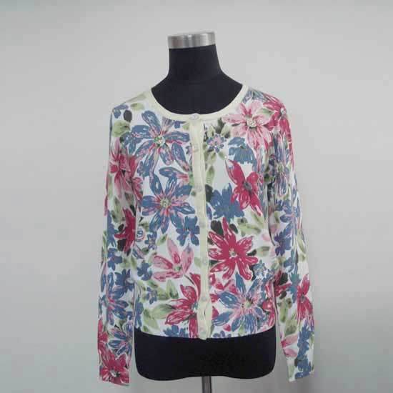 Stay warm in the fall days with this delightfully colored cardigan. The cardigan features a floral print with bright colors. Buttoned or not, this cardigan is sure to stay in the trend.