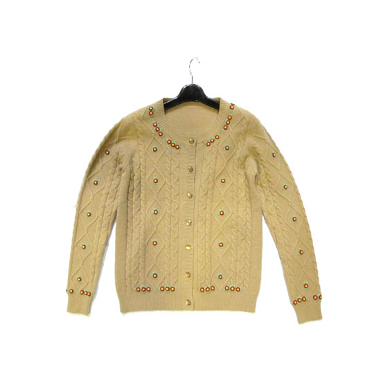This is a stylish ladies' cardigan that features a classic round neckline, long sleeves and a single-breasted button front. The allover shimmering beads add a touch of style to the whole piece. This ladies' cardigan offers a soft and comfortable touch.