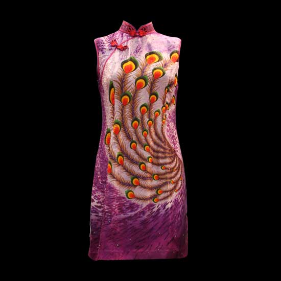 This is a ladies' cheongsam delivering traditional Chinese beauty. The 100% silk construction gives a smooth and natural texture. The slim cut of the cheongsam showcases the ladies' alluring figures perfectly.