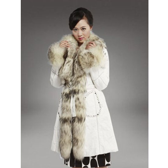 The knee-length overcoat here boasts a fabulous design for ladies. The coat is highlighted by raccoon fur along the placket and cuffs. Handmade stitches are added on the coat to showcase extra glamor.