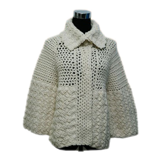 Featured is a coat designed especially to fit the ladies’ feminine figures. The coat is delicately crocheted for a touch of modern style. The ivory white showcases a sweet charm to match your whole look.