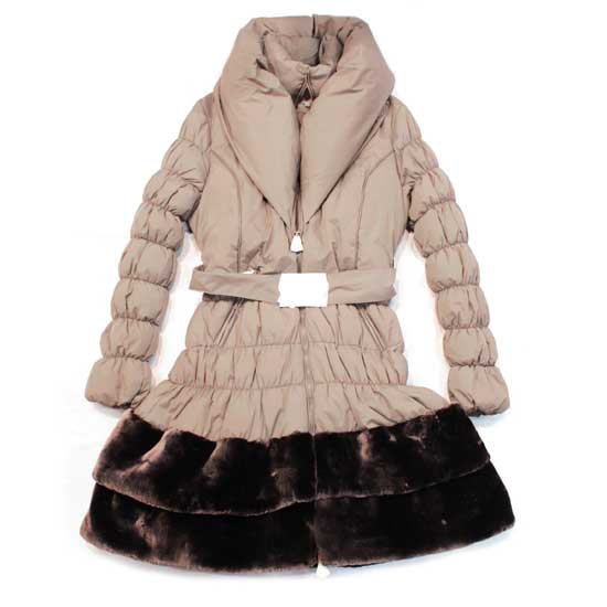This ladies' coat features quilted construction. The unique coat is designed with a fur-trimmed hem for added warmth and style. The belted waist and zippered front complete the design of this piece.