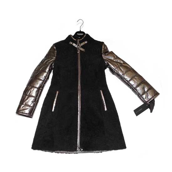 This ladies’ coat in black features a shiny design on the quilted sleeves, neckline, placket and pockets for a fashionable contrast. It is made of wool and leather for coziness and warmth. This noble coat makes you stylish in an instant.