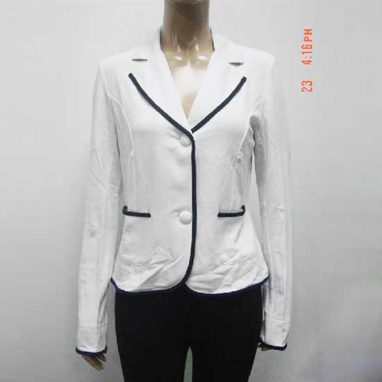This is a ladies’ coat that boasts a classic black-and-white appearance. It is designed with a notch collar, a button-up front and long sleeves. This elegant coat is surely an ideal addition to complete ladies’ wardrobes.