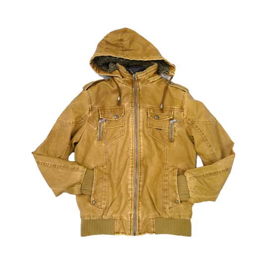 This is a ladies' coat with a fashionable and cool appearance. It comes in brown with two sophisticated front pockets, two waist pockets and a zip front closure. A hood completes this design for a perfect finish.