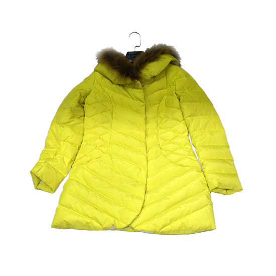 This is a ladies’ coat that comes in allover yellow for a vibrant look. It is designed with a furry collar, a zippered front and long sleeves. This fashionable coat is filled with high-quality down material for ultimate warmth.