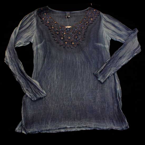 This stylish top features pretty embroidery and beaded details. The cotton fabric gives the blouse a soft and comfy touch. The long sleeves and wide neckline complete this elegant top.