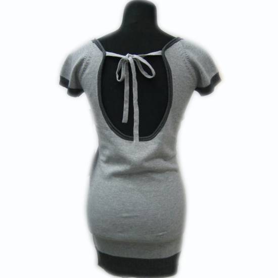 This ladies' dress has stripe patterns on the front, giving a classical appearance. The low-back design attracts people's attention immediately. The contrast between the back and front creates a striking effect, making this dress distinctive.