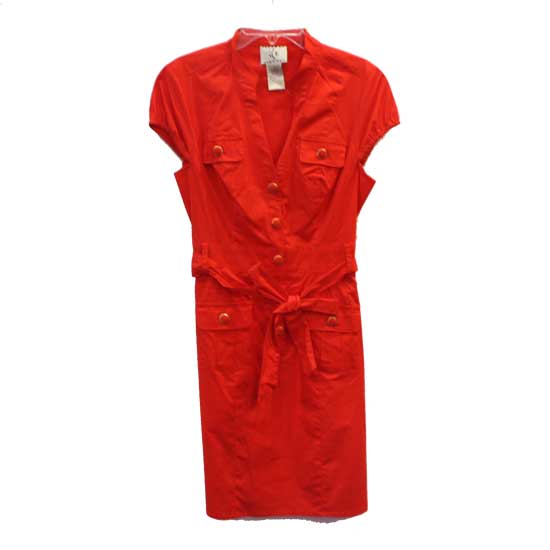 This ladies' dress comes in red for a stylish look. It features a button-up front. It is designed with cap sleeves and a pair of self-tied straps. Update your look with this stylish dress.