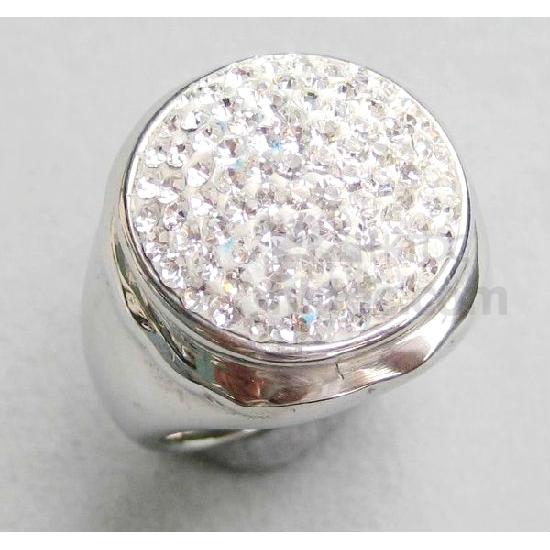 Stun your friend with this dazzling crystal ring. Featuring an unusually large circular frontal ornament, it comprises countless Czech stones to achieve the radiant effect. The shiny stainless steel wide band set off the effect gracefully and complements it with elegance. The ring is a perfect choice for wearing in different occasions.