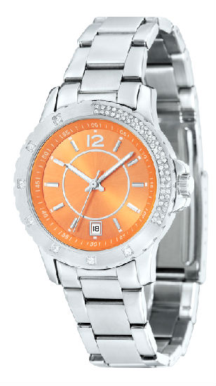 Completed with a round, glistening rhinestone-accented bezel, this ladies watch sporting a bright sunray dial captures attention everywhere you go. Coupled with the easy-to-read date display and hour markers, its accurate 3-hand date movement keeps you right on time. Merging the durability of stainless steel with ultimate comfort, its robust oyster bracelet is a pleasure to wear all day long. Splashes and rains are never a concern with this 3 ATM water-resistant watch.