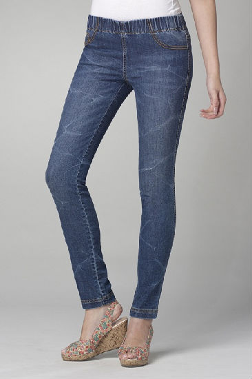 Boast your fashion taste with this pair of skinny denim leggings. These wash denim leggings feature slim fit design with elastic waistband and faux front pockets and fly. Bleached distressing is designed throughout the leggings to provide casual yet chic style for everyday wear.