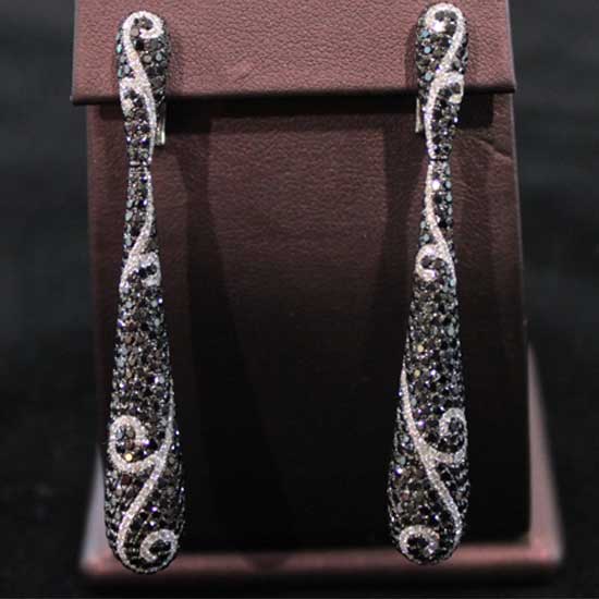 The ladies' earring is fully set with dazzling diamonds in elegant spiral patterns. They are well crafted with meticulous attention to details. Add a glamorous touch to your evening look with this pair of stunning diamond earrings.