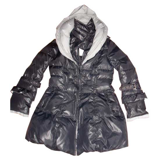 The outlined ladies' coat comes with a shiny nylon surface to build a trendy figure. The entire piece is quilted with down to retain body heat. This ladies' coat is a chic piece to offer you a warm winter.