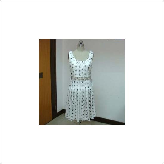 The ladies' dress has little star prints on it and a matching belt around the waist for decoration.