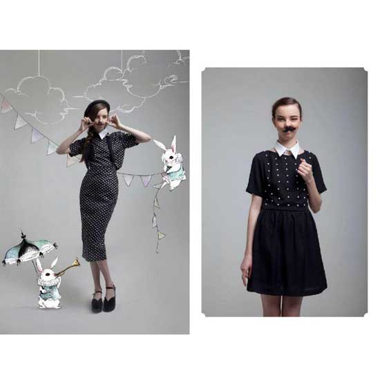 The highlighted one-piece dress features a knee-length design. The top part is accented with rows of metallic studs for added style. The boat neck design goes well with a faux collar.