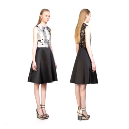 This is a jacquard dress with a black-colored lace back. It comes with a fit-and-flare design for an elegant touch. It is a versatile, timeless work dress that can be worn in both the summer and winter seasons.