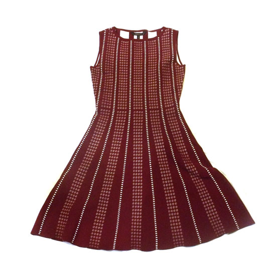 This is a ladies' dress coming with a purplish red finish. The striped pattern adds a classy touch to the whole piece. The sleeveless design makes this dress easy to wear and breathable.
