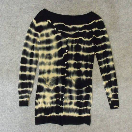 The 3/4-sleeve buttoned sweater flaunts eye-catching dye prints, giving you a wild and breezy look. It comes with two front patch pockets and ribbed hems and cuffs for added style. This is a stylish yet comfortable piece for the autumn.