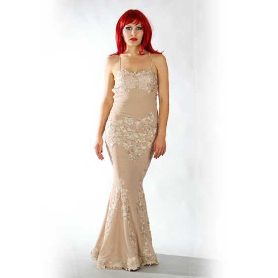 Displayed is a ladies' evening dress that comes in a mermaid style. With an elegant white color with decorations around the chest and waist, this dress showcases your curves perfectly. This gorgeous piece is a must-have for you.
