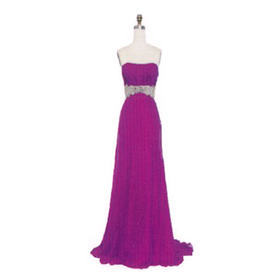 This strapless floor-length dress is excellent for formal occasions. The waistline is adorned with a white belt for a slim-fitting effect. The design in a light plum color is both graceful and spectacular.