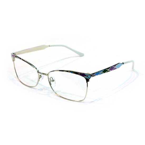 These ladies' eyeglasses are decorated with an attractive quilt pattern on the rim and the temple arms. They are designed with spring hinges and adjustable nose pads to enhance the wearer's comfort. These well designed eyeglasses appeal to many ladies.