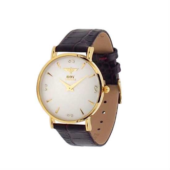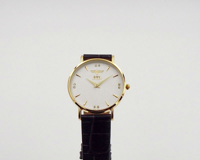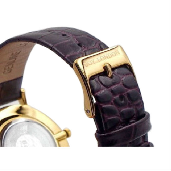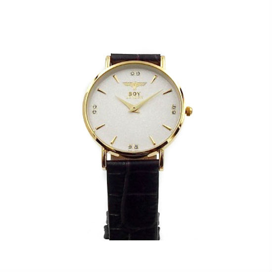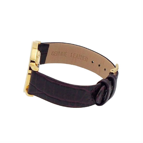 Shown here is a superb fashionable pick as any elegant lady’s watch. Feminine and appealing, the pearl white dial with subtle shimmer comes with an aesthetic Czeck crystal stones decorative feature at 12, 3, 6, 9 O'clock. The ultra slim case of the watch is in sleek IP gold plating, complementing with the thin crocodile patterned buckled strap.