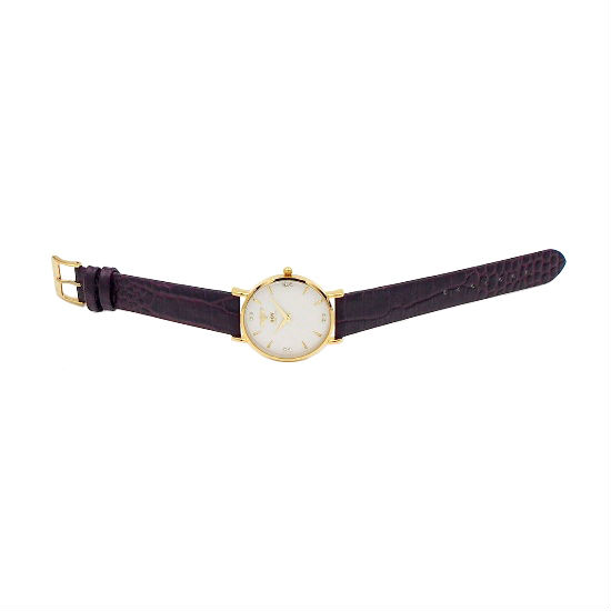 - Gold hour bar index with Czeck crystal stones markers at 12, 3, 6 ,9 O'clock position of dial.