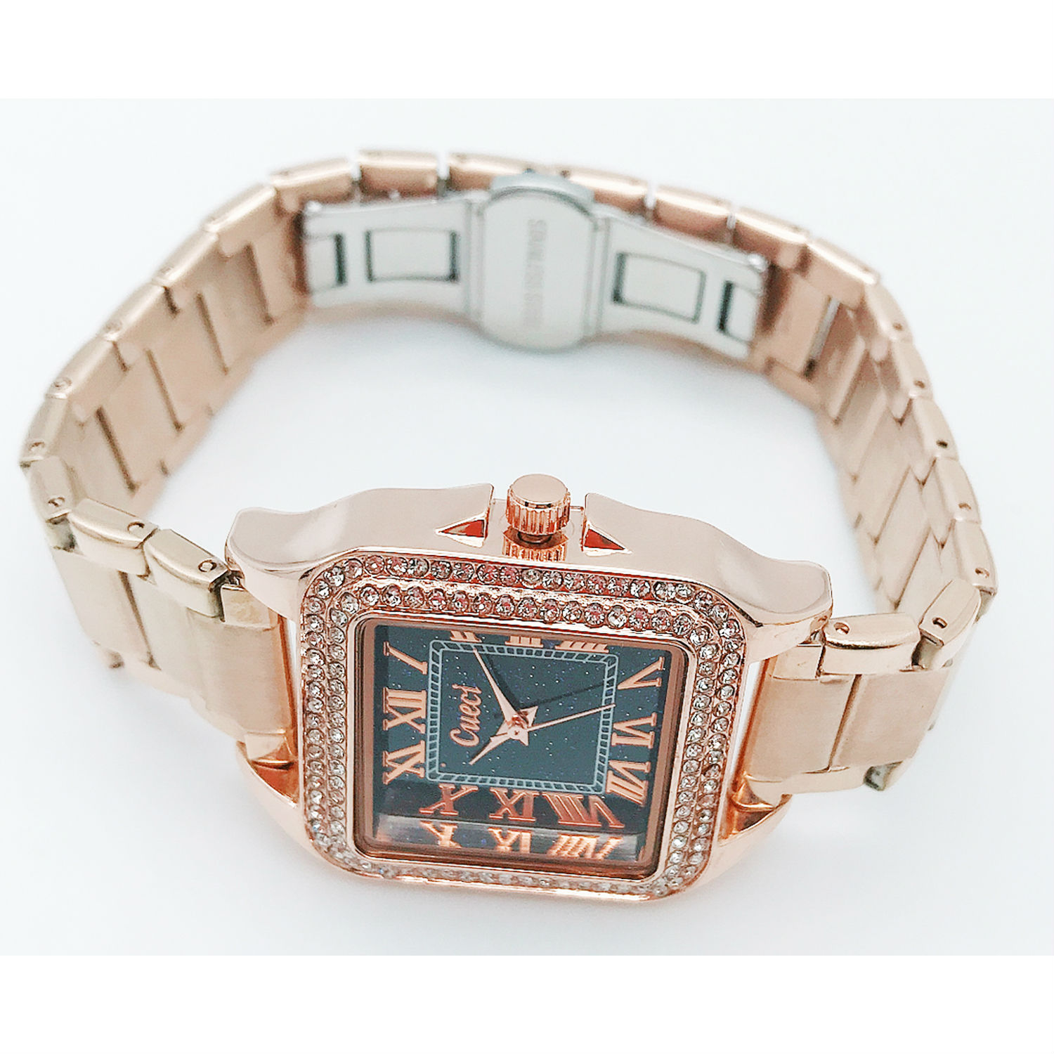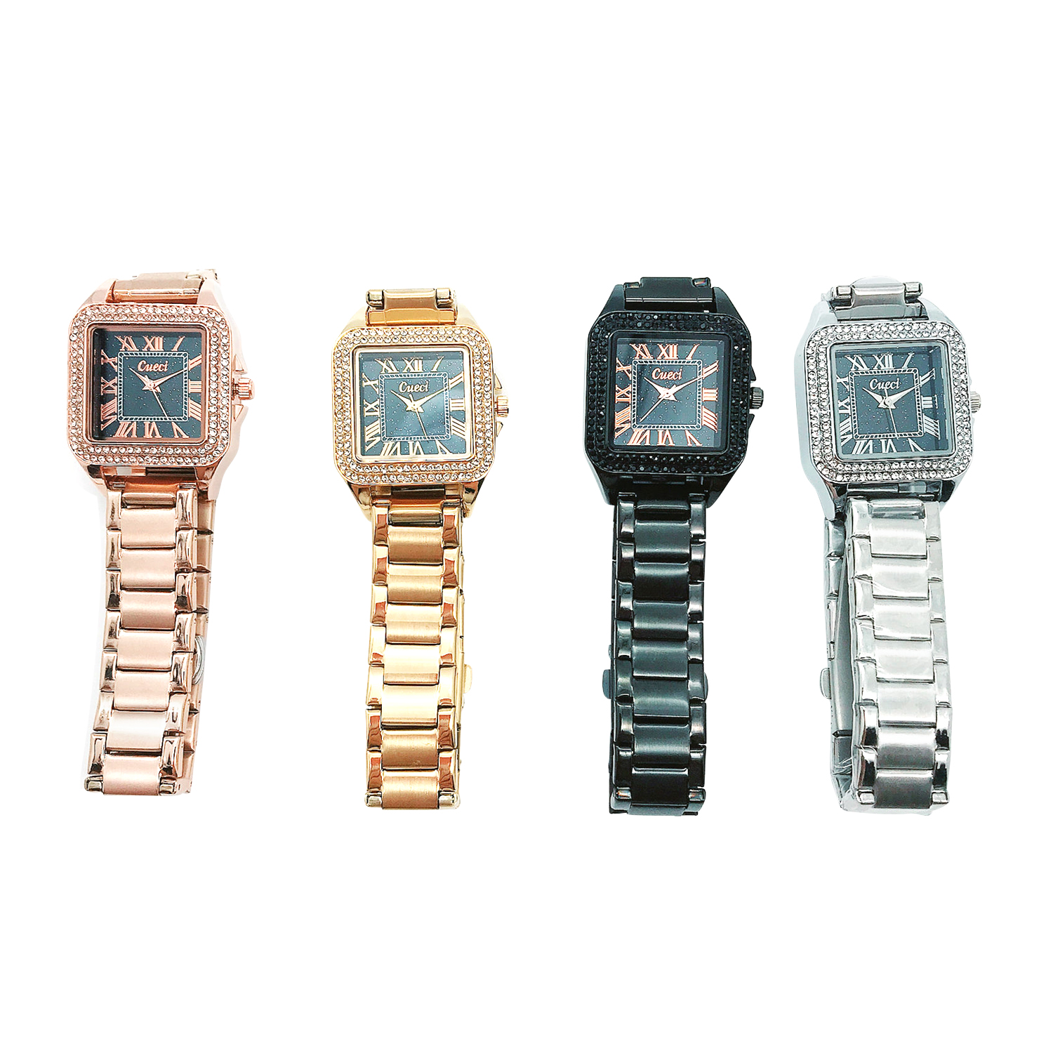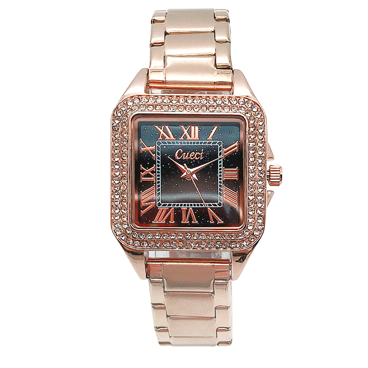 Highlighted here is a 3 ATM Water Resistant ladies watch with an IP plated alloy case, alloy metal band, and good quality rhinestones. It has a square case and has a Japanese movement. This watch flaunts a high accuracy and can add a classy touch to your look.