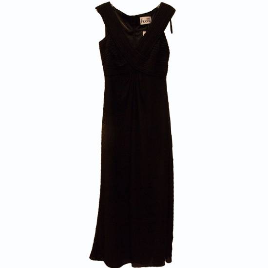 The floor-length dress features a V-neckline highlighted by embossed stripes for a unique decorative touch. The dress is made of silk that promises exceptional wearing comfort. This dress makes an elegant piece to complement ladies' grand wardrobe.