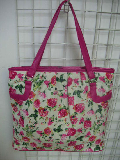 Ladies flower printed canvas with PU tote bag.