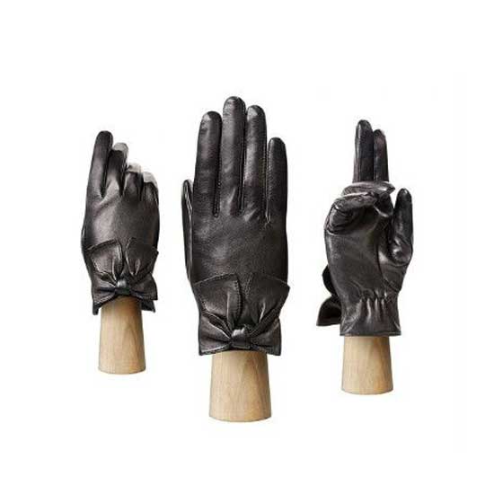 This ladies' glove in black is made of Italian leather for a luxurious touch. It is highlighted with a bow and a gathered design. With a cashmere lining, you can move your fingers freely without feeling cold.
