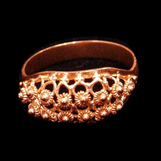 This stylish ring features a dazzling 18K yellow gold construction. It boasts flower-like cut-out patterns on the front for a hint of elegance. Add this stylish ring to your jewelry collection.