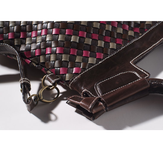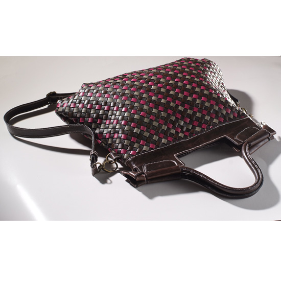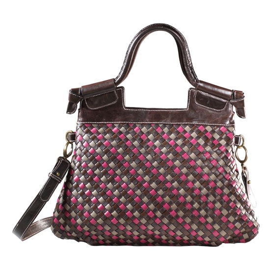 This gorgeous handbag features brown and pink weaving patterns which spice up the functional design. It comes with two strong, durable handles and a shoulder strap with a buckle to adjust your desired length. The classic satchel shape ensures practicality and allows you to carry a variety of items. Made of genuine leather, this handbag is a high quality accessory to go with your everyday outfit.