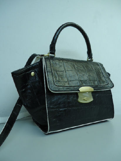 The structured and crocodile patterned silhouette of this ladies’ handbag delights in modern flair with an edgy hint to highlight looks. The roomy interior bids farewell to disorganization, finishing off with a flap and chunky lock closure for enhanced practicality. Its tubular top grab handle further guarantees effortless carry no matter the destination.
