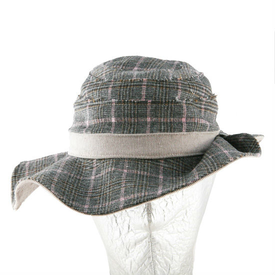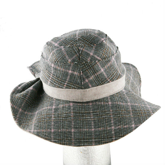 Crafted of poly-blend wool, this vintage glen plaid hat is a must-have for winter elegance. Boasting a layered design with the raw seams exposed at the top, the hat stands out with a wide, curvy brim and lends extra flair with the pleated bow.