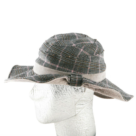 • Wide, curvy brim that is pleated at a side to make a bow.