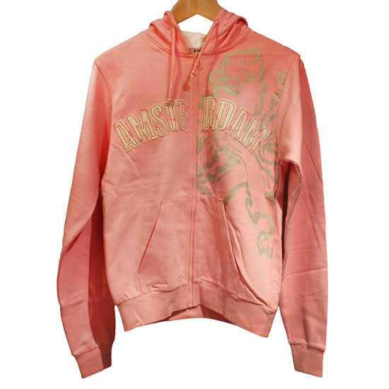 This ladies' coral-colored hoodie features a logo and trendy graphic designs on the front. The functional hoodie is designed with a two pockets and a front zipper closure. The stylish and breathable cotton hoodie is perfect to complete your casual look.