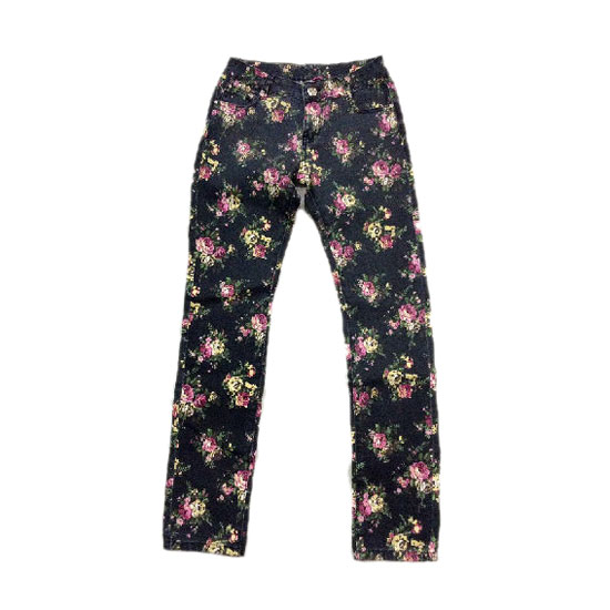 This pair of ladies' jeans comes with a colorful floral pattern. The high-quality cotton jeans deliver satisfying wearing comfort. It is a great addition to your jewelry collection.